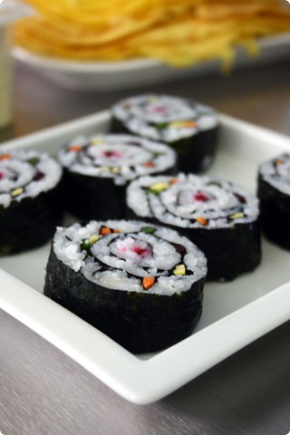 che scuola di cucina colorata e fantasiosa. Questi maki sono un ricamo