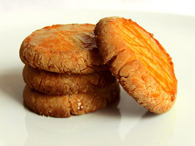 Lavorare i tuorli con lo zucchero fino a ottenere un composto liscio e di color chiaro. Aggiungere il burro molto morbido e il latte, lavorare bene l’impasto. Aggiungere infine la farina settacciata e formare una palla. Avvolgerla con della pelicola e metterla al frigo per 30 minuti. Formare una salsiccia di circa 3 cm di diametro e rimettere l’impasto al fresco per un’ora. Tsgliare infine la pasta a fette spesse 1 cm (ne ricaverete una ventina), deporle su una teglia da forno coperta con carta da cucina e spennellarne la superficie con un tuorlo sbattuto. Infornare per una quindicina di minuti a 200°.